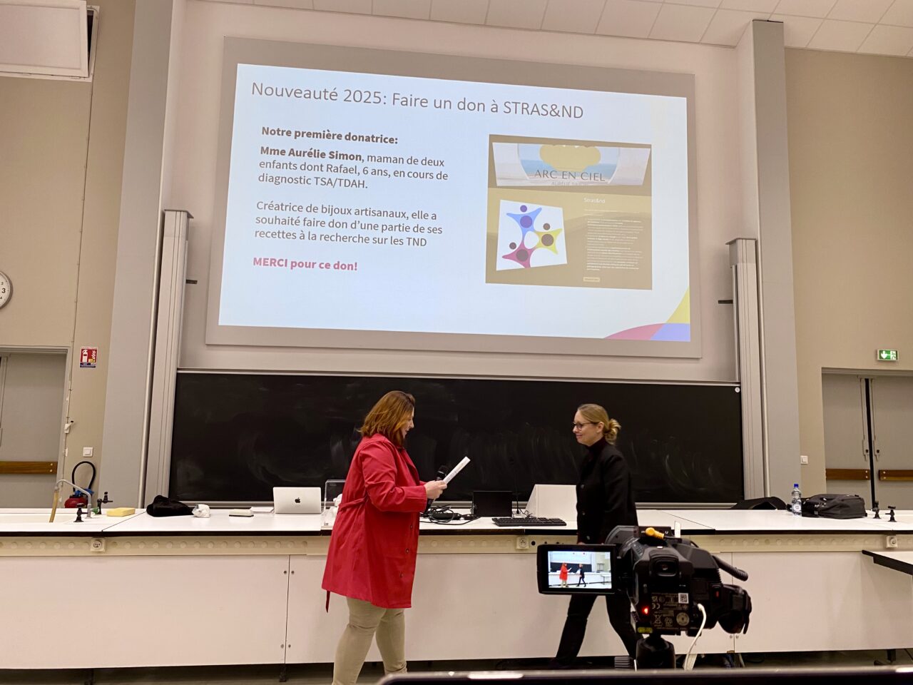 Jeudi 5 décembre, lors de notre soirée annuelle dédiée aux famille, nous avons eu le plaisir de recevoir notre premier don à destination de la recherche sur les TND de STRAS&ND.