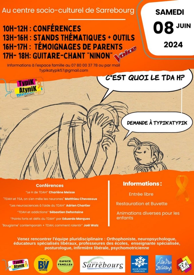 Dans le cadre de la prochaine journée nationale de sensibilisation au TDAH le mercredi 12 juin, retrouvez l’association Typik’Atypik à Sarrebourg