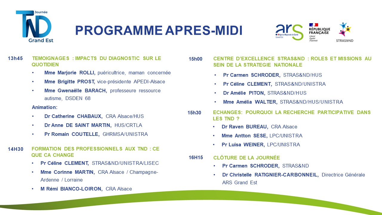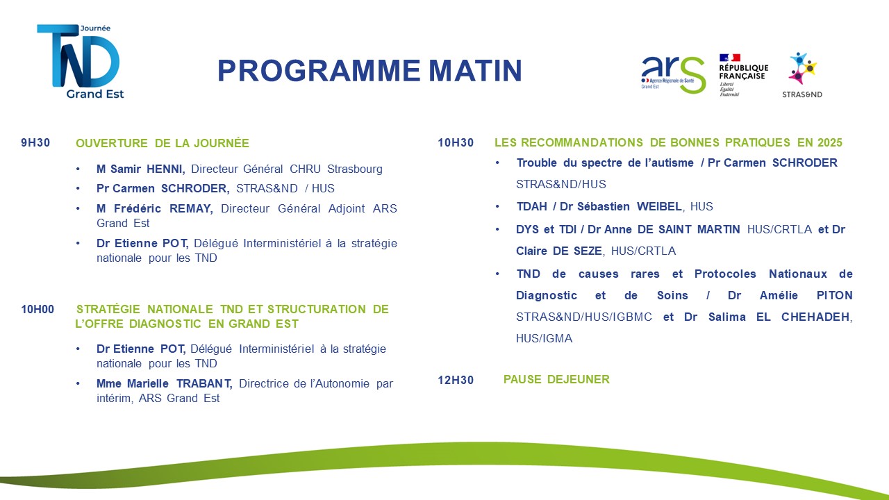 Le Centre d’Excellence STRAS&ND et l’Agence Régionale de Santé Grand Est ont organisé la première journée consacrée aux troubles du neurodéveloppement (TND) en Grand Est le Mercredi 19 Mars 2025 à Strasbourg.