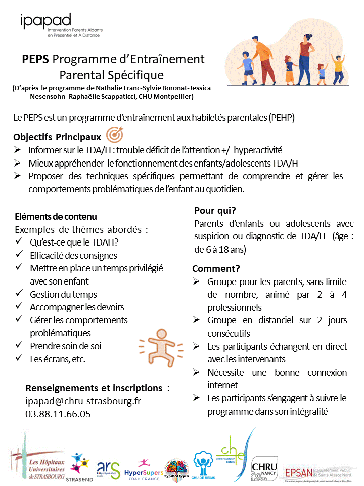 Le projet IPAPAD est un projet inter sectoriel et régional, porté par le Service de Pédopsychiatrie de l’Enfant et de l’Adolescent du CHRU Strasbourg, en collaboration avec le CH Erstein, l’EPSAN, leCHRU Nancy et le CHU Reims pour soutenir